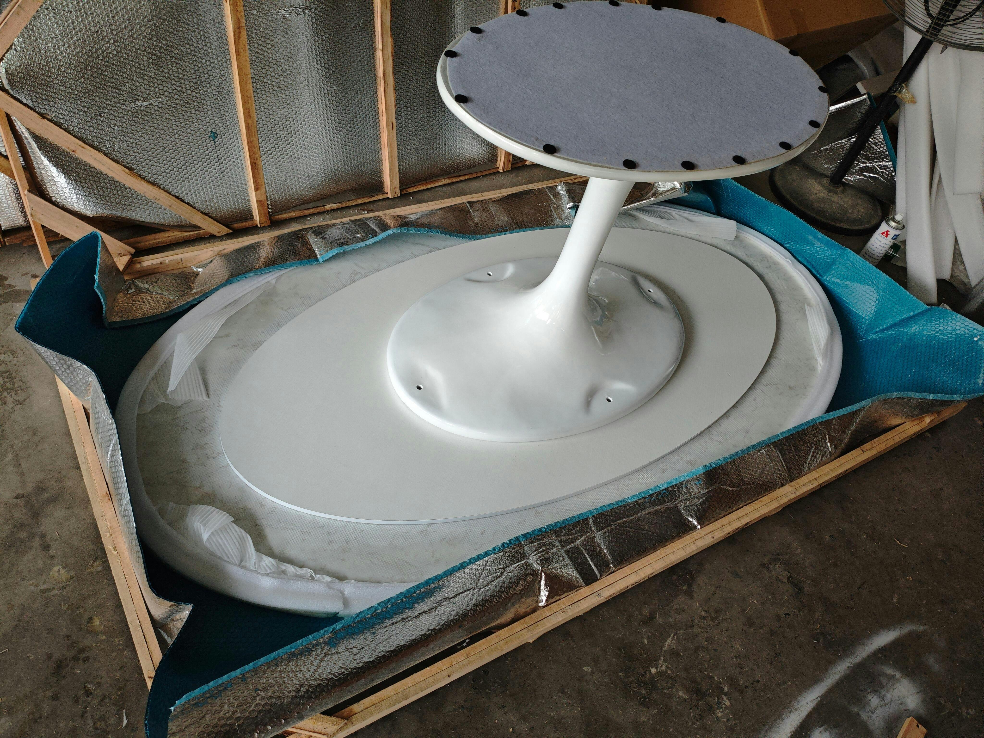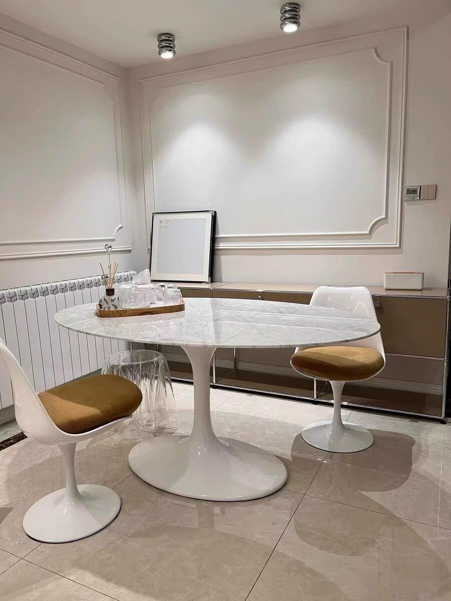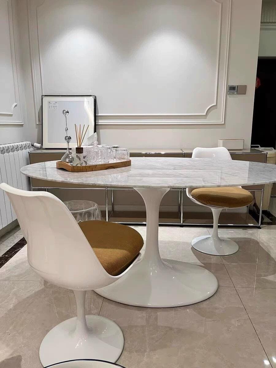Really happy with this oval marble dining table. The shape is perfect for my space and the custom marble options meant I could get something that matched my dining room perfectly. The fiberglass base feels sturdy and the whole piece looks very high-end.